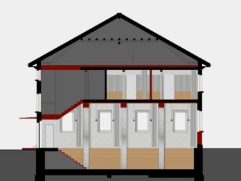 The half of the house from 1893, formerly used by craftsmen, is being converted into a music rehearsal house.